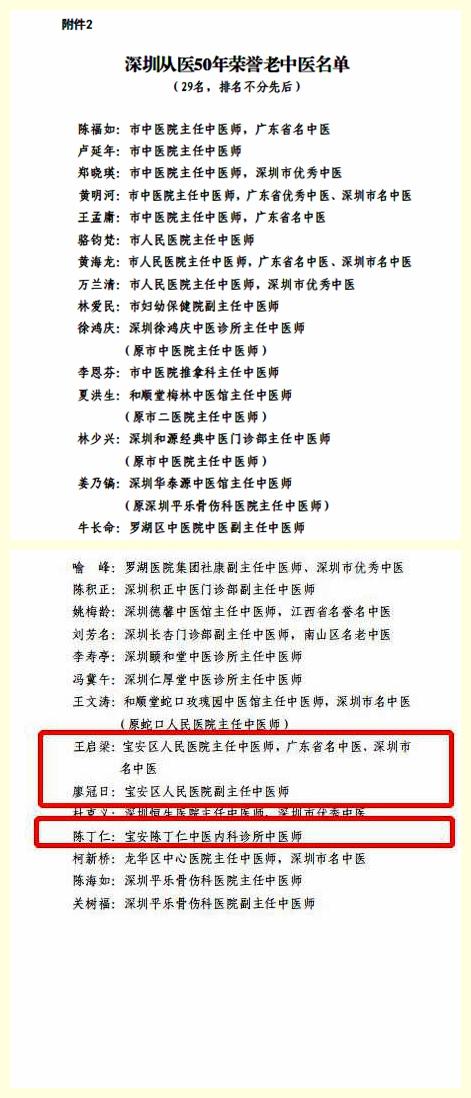 日前,为庆祝经济特区建立40年,深圳市表彰了一批为区域中医药事业取得长足发展,做出突出贡献的中医师。深圳市卫生健康委员会发布了《关于表彰全市突出贡献荣誉中医、从医50年荣誉老中医、首届深圳十大杏林名医的通知》。《通知》显示,经过推荐选拔,最终产生了5名深圳市突出贡献荣誉中医,29名深圳从医50年荣誉老中医,10名首届深圳市十大杏林名医。宝安区多名中医师名列榜单,获得表彰,成为全市中医的榜样。